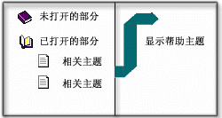 目录中的一本本书表示一个部分单击一本书可以展开它所包含的主题。再单击主题就可以将它的内容显示在右面的框架中了。